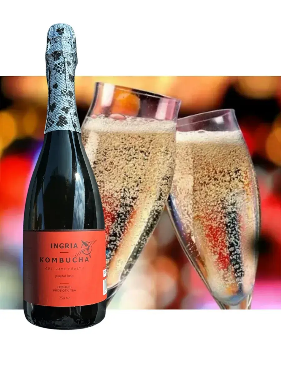 Натуральное, игристое и безалкогольное шампанское брют. Натуральный состав, великолепная альтернатива алкоголю на праздничном столе. Шампанское приготовлено и выдержано на культуре чайного гриба комбучи. Подходит не только взрослым,но и детям. Шампанское не просто вкусное, оно ещё и полезное. Комбуча это природный антиоксидант, а также она способствует нормализации пищеварения.
