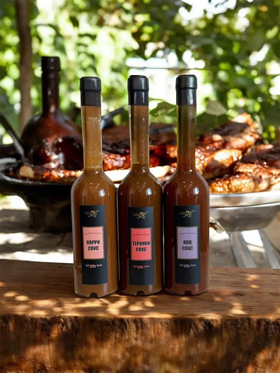 У нас получились уникальные соусы терияки, барбекю и карри в домашних условиях на основе бальзамического уксуса из культуры чайного гриба Комбуча. Кисло-сладкие, пикантные соусы, немного с остринкой (кроме барбекю, он действительно острый), можно добавлять как к любым мясным, рыбным блюдам, птице, так и в салаты, овощное рагу и омлеты. Попробуйте и оцените наши новые соусы Карри, острый Барбекю по авторскому рецепту и авторский Терияки натурального цвета, без колера, еще никто не оставался равнодушен к нашему продукту!